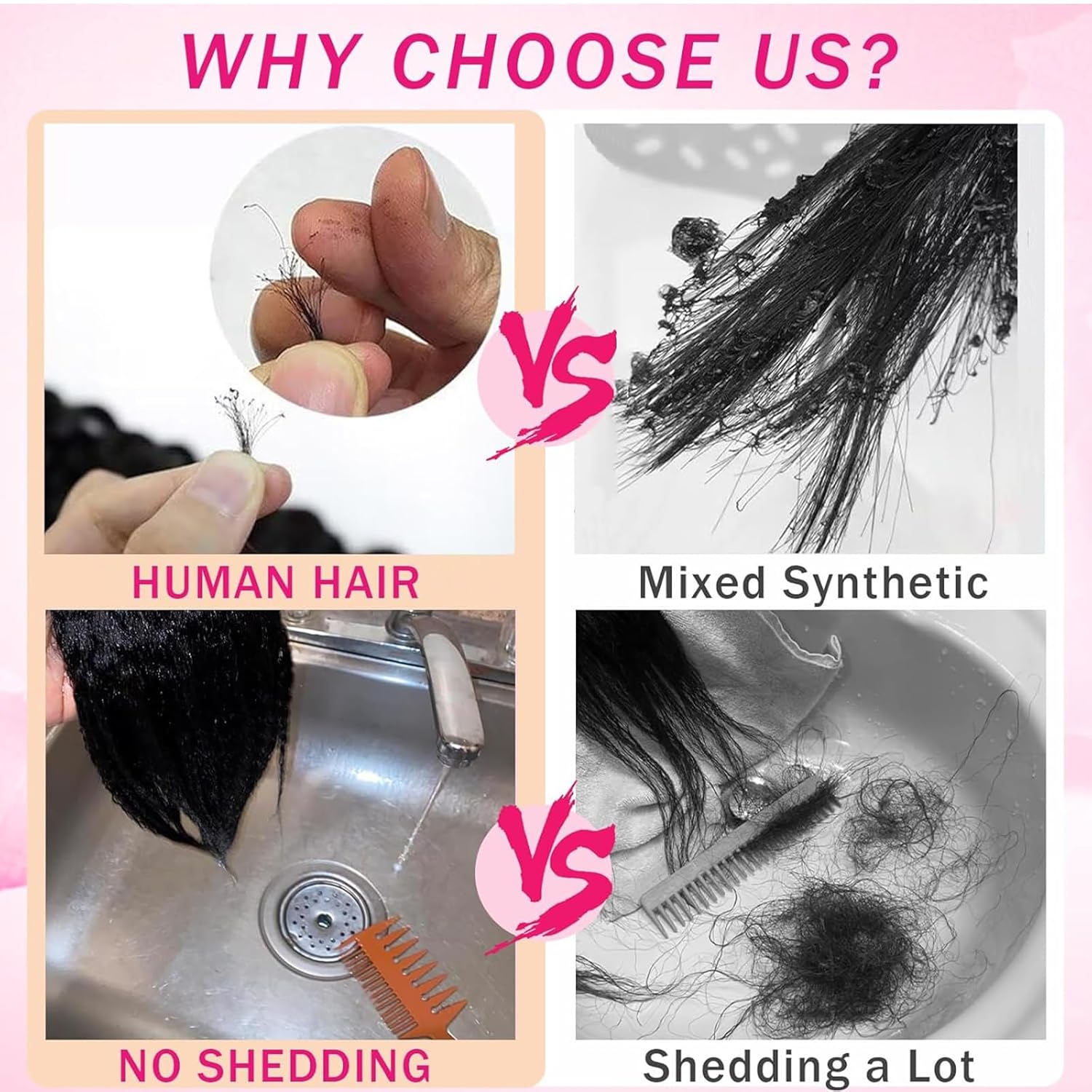 2.Hand-made Double Weft: Strict quality control to ensure hair does not fall out